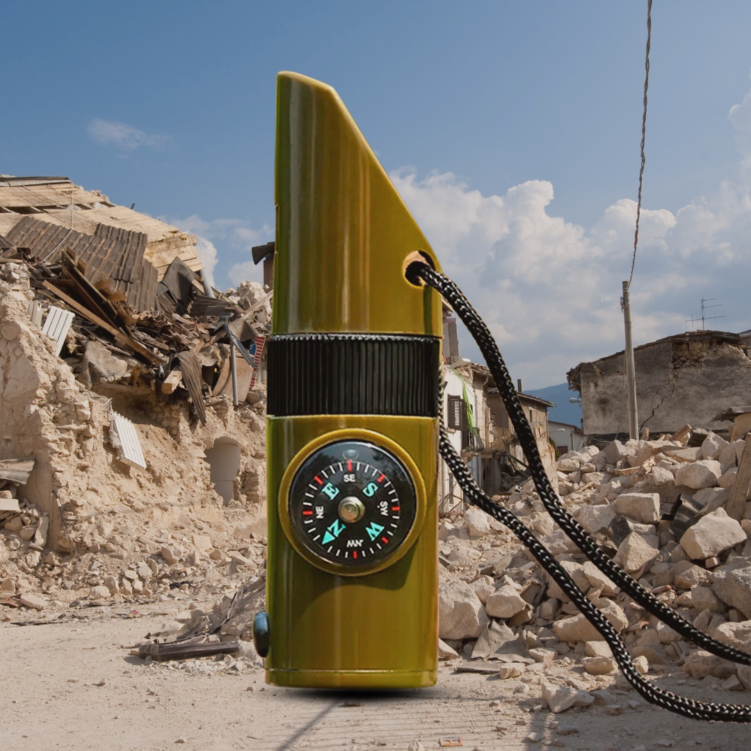 3.📯Usa el silbato soplando fuerte para pedir ayuda.